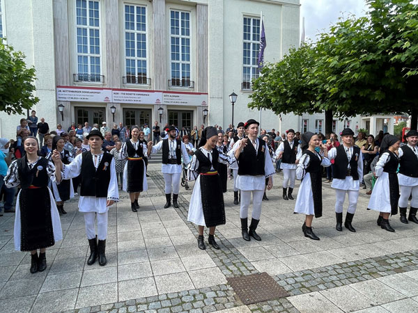 Die Arbeitsgespräche endeten mit einer Vorführung der rumänischen Folklore Tänzer, die ihren ersten Auftritt im Rahmen der neuen Festspielwoche der Elblandfestspiele vor dem Kultur- und Festspielhaus Wittenberge präsentierten.